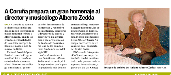 A Coruña prepara un gran homenaje al director y musicólogo Alberto Zedda